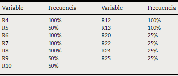 Estos reductos se agruparon en una tabla de frecuencias de cada variable (tabla 6).