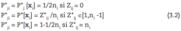 El conteo de los éxitos es: Y*ij = Σt [Z*ijt|εi], siendo Prob[Y*ij = y*ij |εi] = {Qij +(1- Qij )(1-πij)nij}I[y*ij=0]×{(1-Qij)Cy*ijnijπijy*ij(1-πij)nij-yij}1-I[y*ij=0]