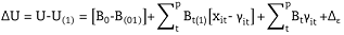 El logaritmo de la verosimilitud es L[(γT ,βT ,θT); y*] = Σki=1 log{∫ℜk Πj Prob[Y*ij = y*ij|εi]}dF(εi).