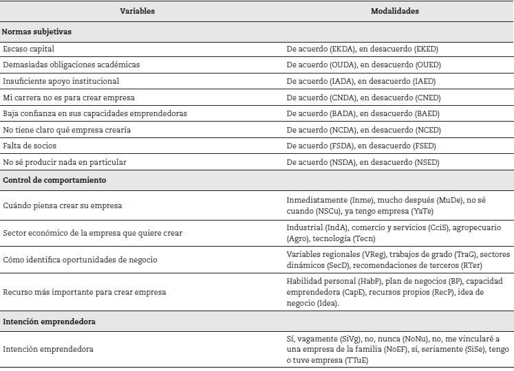 La investigación tiene un enfoque cuantitativo y un alcance correlacional; el trabajo se llevó a cabo con estudiantes de administración en AL, carrera que fue seleccionada por conveniencia al ser una de las más ofertadas en las universidades de la región. Las variables de estudio se tomaron de Tarapuez et al. (2015), quienes priorizaron un conjunto de preguntas con base en la TCP de Ajzen (1985), 1991).