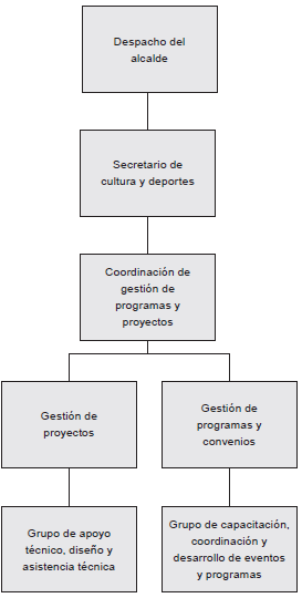 Por otra parte, debe estar conformada de manera pertinente, flexible y dinámica, es decir, acorde con las necesidades y el cumplimiento de los objetivos. Por esta razón, empezaremos por proponer una estructura orgánica que se ajuste a las expectativas y el cumplimiento de los objetivos de la Secretaría de Cultura y Deportes de Quibdó (figura 2).