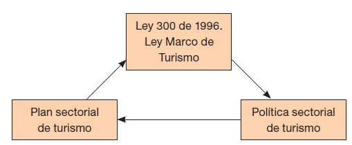En la ley marco de Turismo (Ley 300 de 1996), se establecen los principios básicos por los que se rige la industria turística; se crea además el Viceministerio de Turismo, así como la Dirección de Calidad y Desarrollo Sostenible del Turismo y la Dirección de Análisis Sectorial y Promoción. A su vez se crea el Plan Sectorial de Turismo (PST) y se otorga la responsabilidad de la promoción turística del país al Ministerio encargado. Se crean los diferentes instrumentos de apoyo al sector, como por ejemplo: incentivos tributarios para el fomento de la actividad, la contribución parafiscal; el Fondo de Promoción Turística para el manejo de los recursos recaudados por la contribución, y el Registro Nacional de Turismo, entre otros, y por último, se describen las diferentes clases de prestadores de servicios turísticos, se estipulan sus derechos y deberes, así como sus sanciones, y se reglamenta la creación de la Policía de Turismo.