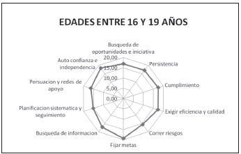 Para una persona de este rango de edad todavía es difícil, aunque en un promedio más bajo, tomar riesgos y decisiones que le permita prosperar, esto es debido a que un emprendedor va a sentir siempre el deseo de satisfacer sus necesidades de logro, y le es muy difícil asumir y satisfacer sus necesidades de poder y planificación, ya que siempre se va a enfocar en sus propios logros.