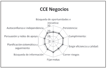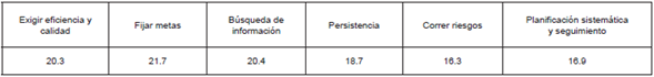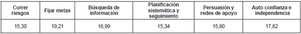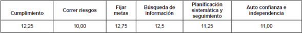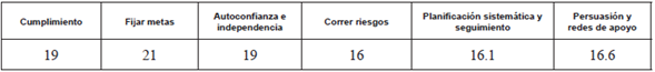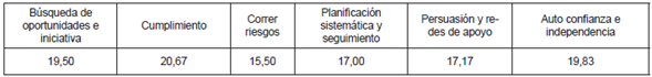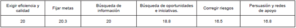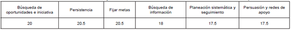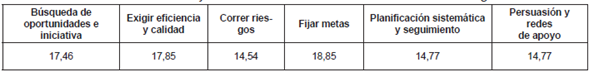 Las deficiencias en esta muestra se evidencian en la falta de iniciativa y búsqueda de nuevas oportunidades que en un emprendedor se define como la capacidad de liderar y llevar a cabo nuevos proyectos en los cuales se pueda desarrollar y tomar responsabilidad; también el aspecto estratégico y de planeación de las mismas se encuentra en una baja calificación, ya que al no tener ideal innovador e iniciativa, su poca habilidad para influenciar en otros no permite desarrollar esa parte de la personalidad en la organización. (Véase Tabla 16).
