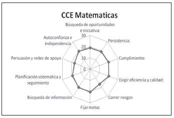 En cuanto al programa de Matemáticas se refiere, hay un cambio notable en los resultados, en comparación con los programas anteriores, ya que la necesidad de planeación está más arraigada en los individuos que comprenden la muestra, debido a las altas calificaciones en la exigencia de eficiencia y calidad, fijación de metas y la búsqueda de información. Para estas personas es de vital importancia seguir las normas tal cual, para alcanzar sus objetivos, son recursivos para tomar decisiones teniendo en cuenta las personas a su alrededor y ayudas útiles que se les presente en el camino. (Véase Figura 20).
