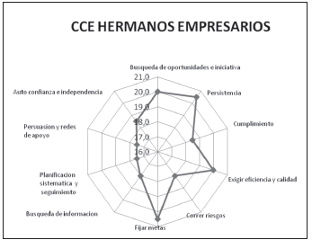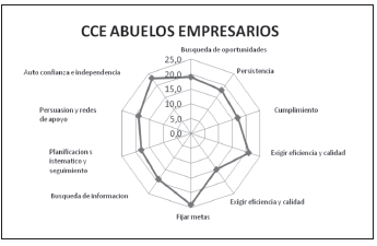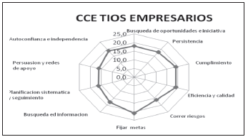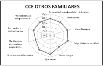 También se encuentra que cuando otros familiares son empresarios, la falta de persistencia, planificación, cálculo de riesgos es evidente; el impulso del estudiante va enfocado hacia las metas, la eficiencia y la documentación, lo cual clasifica a este grupo en el de individuos orientados a la planeación, con un interés de aprovechamiento de nuevas oportunidades mediano donde la iniciativa no tiene relación con las relaciones familiares y de cargos específicos en su entorno.