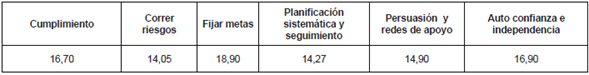 La autoconfianza hace parte importante de esa fijación de metas ya que se expresa así mismo una necesidad de poder y de responsabilidad por tomar acción y compromiso de acuerdo con esas metas fijadas. Este análisis infiere un cambio positivo en cuanto al nivel de inclinación hacia el logro, poder y planificación en relación con los alumnos con padres empresarios, ya que posiblemente influencie en su comportamiento, la situación de emprendimiento de sus padres.