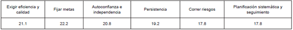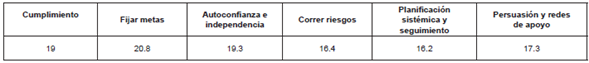 Existe un equilibrio en lo que se refiere a exigencia, búsqueda de información y persistencia, lo cual denota una actitud emprendedora para las mujeres de la población, ánimo por mejorar su desempeño, trabajo en equipo, compartiendo no solo opiniones de la población, también teniendo en cuenta las fuentes de información para ser tomadas en cuenta a la hora de la toma de decisiones. (Véase Tabla 20).