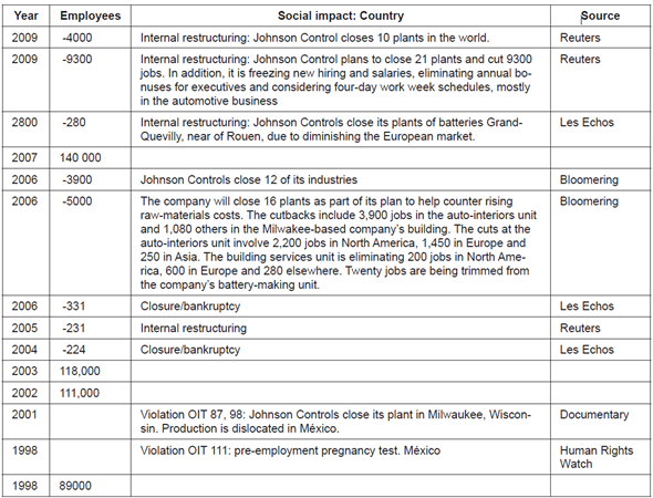 In Mexico, working for the multinational company Johnson Controls means for workers to endure bullying, abuse and violations of labor rights, which also exert Mexican Regional Federation of Labor (CROM), head of the collective bargaining agreement (Jaimes, 2008). Therefore, the company decided to close the plant as it is being said that “the labor problem in Johnson Controls, began in August 2010 when the union in turn was reported by workers to protect the interests of the company also overlapping bullying and increased working hours without additional remuneration”.