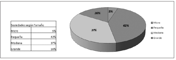 Como se muestra en la Figura 3, las micro, pequeñas y medianas empresas (Mipymes) representan el 84% del total de sociedades registradas en el país. Lo anterior evidencia la importancia que tienen las políticas económicas encaminadas a generar capital social en este tipo de empresas para la sociedad. Capacitación, formalización laboral y empresarial, acceso al mercado de créditos y a los mercados internacionales, ejes estratégicos básicos de la RSE interna, son los grandes desafíos que tiene el Gobierno en sus pesados vagones de las locomotoras de la prosperidad.