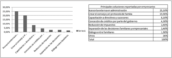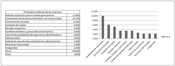 Según la Figura 4 y para el caso particular de las empresas familiares, las cuales representan más del 70% de las sociedades en Colombia y las que menos contribuyen al mapa estratégico de RSE en el país, se encuentra que los principales problemas que enfrentan gran parte de las empresas son la poca preparación para el cambio generacional y la combinación de decisiones familiares con las empresariales. Lo anterior evidencia por un lado el poco acceso a servicios de capacitación y por otro, la poca flexibilidad de las estructuras organizacionales para responder a entornos competitivos diferenciados (véase Figura 5).