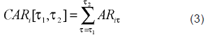 Naturally, the average abnormal return on the market portfolio of country i can be calculated using AR from (2) for the event period, T = T + 1 T2; i.e. L2 periods as follows: