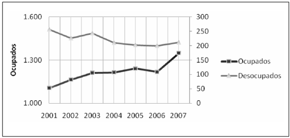 Así, los subempleados absorben los potenciales empleos y disminuyen el nivel de desempleo. Entre 2001 y 2002 hay un incremento en el subempleo de 12.000 personas. Entre 2002 y 2003 sigue subiendo y llegan a 38.000, del 2003 al 2004 hay una disminución en 46.000 subempleos menos, de 2004 a 2005 hay una reducción sustancial de 158.000 subempleos menos que el año inmediatamente anterior. Para los años 2006 y 2007 nuevamente crece en 93.000 y 95.000 respectivamente, entre 2007 y 2008 prácticamente se sostiene con 5.000 empleos más. Finamente, para el año siguiente (2009), se incrementan hasta los 61.000 empleos más que el año anterior.