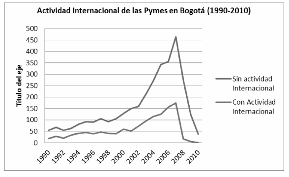 Finalmente, la tercera hipótesis se rechaza dado que las Pymes jóvenes en Bogotá nacen globales más el comportamiento no ha sido exponencial a través del tiempo. En la siguiente Figura 1 ilustra la situación: