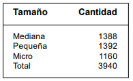 Para esta investigación se ha utilizado información de una base de datos de la Cámara de Comercio de Bogotá (CCB) con información de enero 1972 a abril de 2010, con 3.940 micro, pequeñas y medianas empresas. Se pidió a la entidad una composición homogénea de la muestra que se distribuyó de la siguiente manera: (Vease Tabla 1).