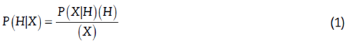 Donde: H son los atributos del documento, X la clase y P X H la probabilidad de ocurrencia del atributo en la clase dada. La clase seleccionada por el clasificador será la que maximice P H X , (Baker et al., 2020; Han et al., 2011).