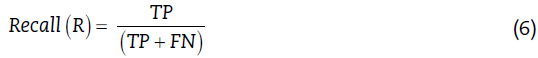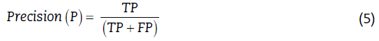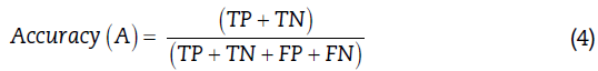 Donde: TP (True Positive) es verdaderos positivos, FP (False positive) es falsos positivos, TN (True negative) es verdaderos negativos, FN (False negative) es falsos negativos.
