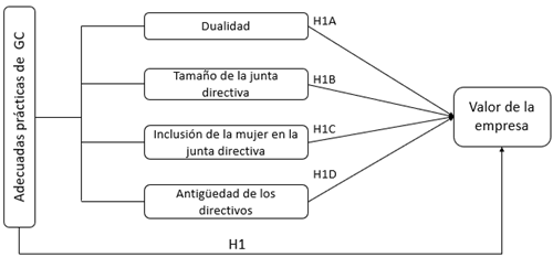 H1: Las prácticas adecuadas de GC aumentan el valor de las empresas.