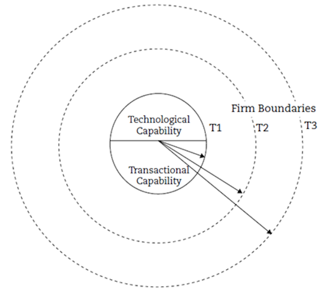 Proposition III - The firms can expand their boundaries by accumulating technological capability, transactional capability, or both.