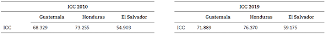 Para el caso de este índice, entre mayor cercanía a 100 mayor evidencia de complementariedad comercial entre los socios comerciales. Las estimaciones para 2010 y 2019 indican que el país con el que mayor complementariedad se tiene es Guatemala, situación que ha permanecido estable desde el inicio del Acuerdo hasta el 2019. Además, cabe mencionar que el ICC ha aumentado de forma significativa en los diez años de vigencia del Acuerdo, como se puede apreciar en la Tabla 6.