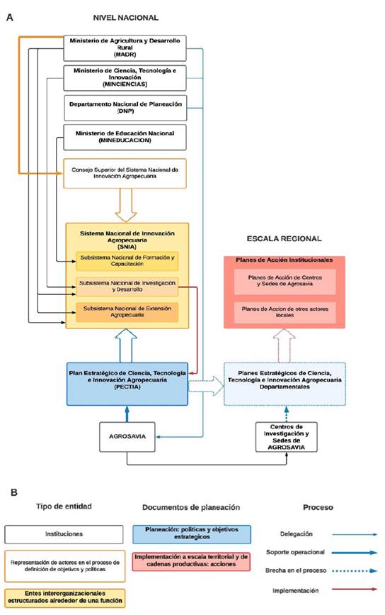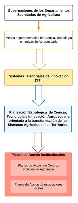Actualmente, la planificación del SNIA está limitada al PECTIA, que tiene la función de documento estratégico de escala nacional. Las líneas de acción y los objetivos estratégicos de este documento están conectados a las necesidades territoriales y las cadenas de valor a través de la identificación y priorización “cualitativa” de demandas de ciencia, tecnología e innovación (CTI) (Corpoica et al., 2016). Las demandas prioritarias identificadas deben ser satisfechas con futuros proyectos de CTI financiados con recursos públicos. La priorización de las demandas es desarrollada usando un enfoque cualitativo en el que los expertos califican, a partir de su juicio, qué tan importante es cada una de las demandas. Las demandas de primer y segundo orden son consideradas prioritarias y usadas para retroalimentar el documento de planificación nacional.