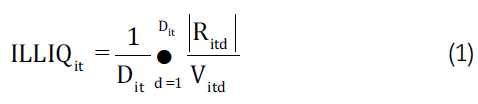 The most commonly used measure of liquidity risk in various studies corresponds to the Amihud index (Amihud, 2002) (equation 1):