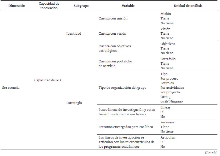 Teniendo en cuenta lo anterior, se tiene como postulado que cuando los grupos de investigación identifican el estado de sus capacidades de innovación, pueden, a su vez, aportar de manera significativa a la transferencia de tecnología al sector productivo, a la sistematización de la información y a la gestión del conocimiento propia, y de la Institución; asimismo, puede mejorar su proceso de reconocimiento (Rodríguez-Lora & Herrera-Caballero, 2021; Sánchez-Sellero & Bataineh, 2022).