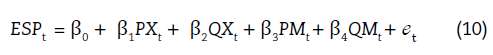 Once the seasonality of the series is determined and, therefore, its order of integration (the number of times that must be differentiated to make it stationary), the Engle- Granger test is performed estimating (4):