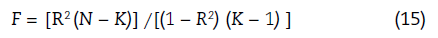 Where N is the number of observations, and R2T is the coefficient of determination of the equation: (20)