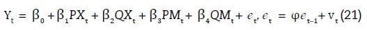When a first-order autocorrelation is detected, it is solved by incorporating a first-order autoregressive process (AR(1)) into the error (21).