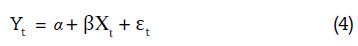 Where Y is the dependent variable of interest and v is the white noise. The estimate is made with the Generalised Least Squares (GLS) method.