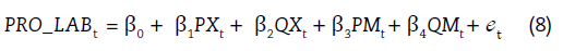 Thirdly, there is a negative relationship between labour productivity and export volume. In contrast, Asada (2020) evidenced a significant relationship between labour productivity and international trade at 1%.
