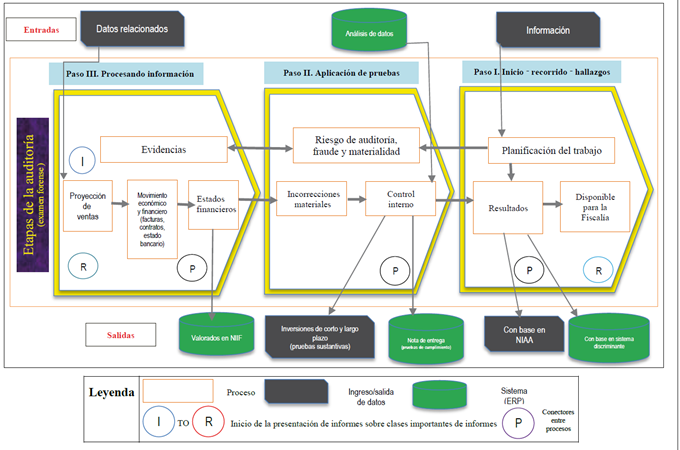 La Figura 1 se ajusta a las necesidades de este tipo de investigación, donde el principal objetivo es identificar el riesgo de auditoría, el fraude y la materialidad. Para ello, el autor propone tres pasos o fases que le permitirán profundizar en los fenómenos detectados (Sharma et al., 2022). El primer paso consiste en la preparación del programa de auditoría. El segundo paso evalúa los riesgos asociados al fraude, delito y corrupción, así como la importancia relativa. El tercer paso evalúa las proyecciones de ventas, los contratos y los movimientos bancarios y lo contrasta con los estados financieros; a la vez, hace una retrospectiva del análisis que le permita la evaluación de las incorrecciones materiales como punto de partida para estudiar los fenómenos o la problematización, junto con la evaluación del control interno a partir de las pruebas sustantivas y de cumplimiento que presenta las debilidades o los elementos comunes del sistema de control interno.