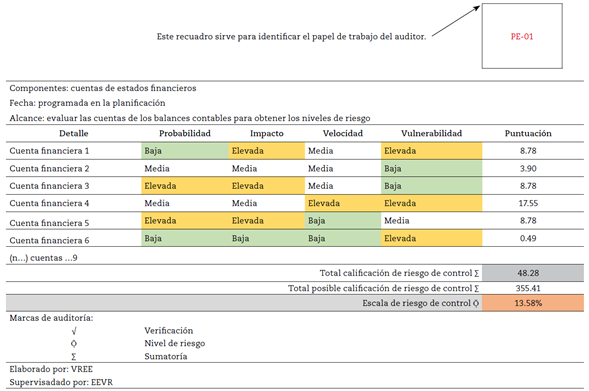 Riesgo de control (48.28) / total posible calificación de riesgo de control (355.41) = escala de riesgo de control (13.58 %).
