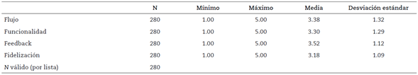 Para la validez de contenido del instrumento, se recurrió a la validación por expertos con trayectoria y especialización en los temas abordados. La evaluación fue realizada mediante una cédula en la que se solicita calificar con una puntuación de 1 al 4 (siendo 4 Alto nivel de cumplimiento), de acuerdo con cuatro categorías (suficiencia, claridad, coherencia y relevancia), y una sección de observaciones para exponer sugerencias (Escobar-Pérez & Cuervo-Martínez, 2008). Como resultado de esta evaluación se realizaron ajustes en las dimensiones de funcionalidad, feedback y fidelización.