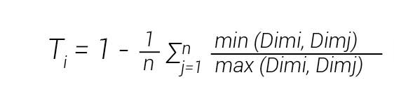 [Ec. 7]donde: Ti = Grado de diferenciación en diámetros; j = 1; n árboles vecinos; i = árbol de referencia; Dimi = diámetro del árbol i; Dimj= diámetro del árbol j.