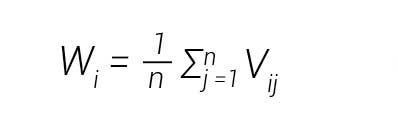 [Ec. 4]donde: Wi= valor del índice para el j-ésimo árbol referencia, n = es el número de árboles vecinos considerados, Vij = variable 1 cuando el j-ésimo ángulo 〈 entre dos árboles vecinos próximos es menor o igual al ángulo estándar 〈, en caso contrario toma un valor de 0.