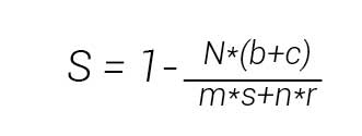 [Ec. 5]donde: N = es el número total de pares de árboles (árbol referencia y su vecino más cercano), n y m son el número de especies A y B respectivamente, r y s son el número de veces que los árboles de las especies A y B se encuentran como los vecinos más cercanos al árbol referencia. Si el vecino más cercano es de la misma especie que el árbol de referencia entonces S = 1. En caso contrario, si todos los vecinos son de especie diferente a los árboles de referencia, entonces S = -1. Los valores cercanos a S = 0 se puede interpretar como una distribución completamente aleatoria de las especies (Aguirre, 2004; Pommerening, 2002).