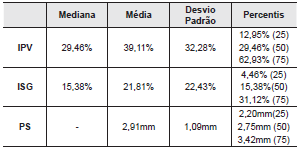 Os resultados obtidos nesta pesquisa permitiram verificar um alto IPV e ISG nos pacientes. A média de PS foi baixa, na maioria dos pacientes, o que não é considerada ainda uma DP.