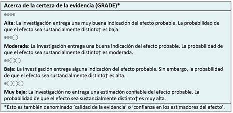 ● Es probable que las conclusiones de este resumen cambien con futuras investigaciones debido al nivel de certeza de la evidencia existente.