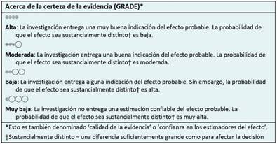 Este resumen de evidencia fue elaborado con el apoyo metodológico del Centro Evidencia UC, Facultad de Medicina, Pontificia Universidad Católica de Chile