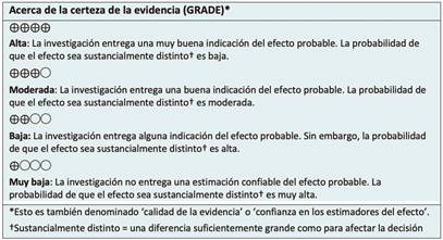 ● La probabilidad de que una futura evidencia cambie las conclusiones de este resumen es alta, dada la incertidumbre de la evidencia existente.