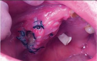 El diagnóstico histopatológico correspondió a numerosas Hifas no septadas del tipo Mucor y Osteomielitis. El paciente se mantuvo en control constante por el equipo interdisciplinario decidiéndose iniciar tratamiento antibiótico con Anfotericina B 50 mg EV.