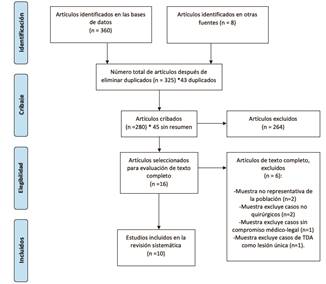 La búsqueda sistemática de la literatura identificó 368 artículos, el detalle del flujo de selección de los artículos se muestra en la Figura 1.