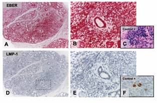 Se utilizó como control positivo para la detección de LMP-1 y EBER secciones de linfoma de Hodgkin y linfoma T/NK, ambos VEB+, respectivamente.