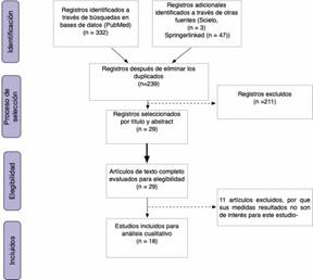 En total, se encontraron 239 artículos, de los que finalmente se incluyeron 18 para su análisis cualitativo (Figura 1).