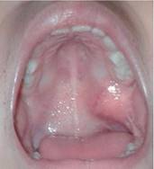 A six-year-old girl presented with her mother to the Maxillofacial Surgery Department with a painless swelling of the left side of the soft palate after three months of evolution. The mass gradually increased and was not associated with aggravating or relieving factors. Her medical and family history was otherwise non-contributory.