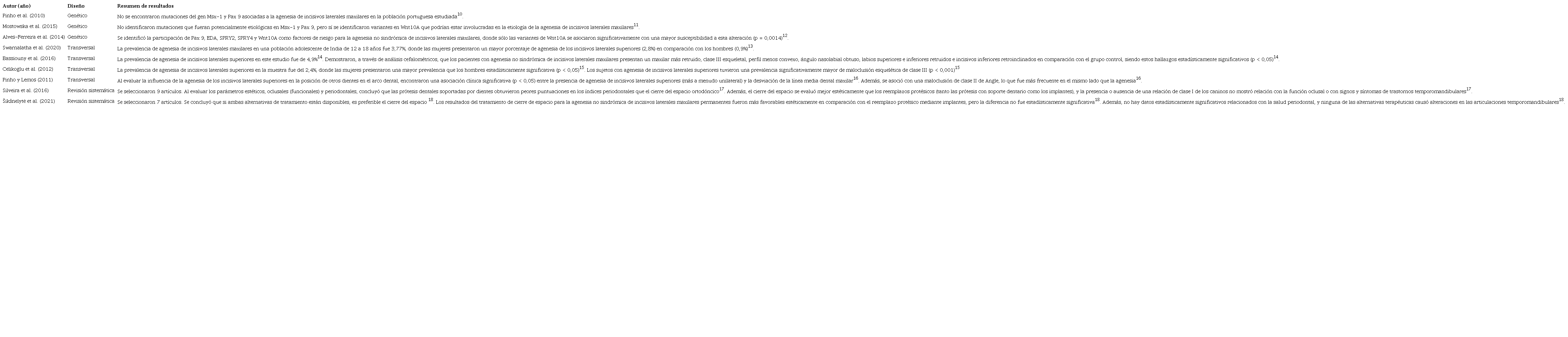 Aunque recientemente se han realizado avances en la identificación de factores genéticos implicados en la etiología de la agenesia dental, actualmente poco se sabe con respecto a la base genética de la agenesia no sindrómica de incisivos laterales maxilares permanentes11.