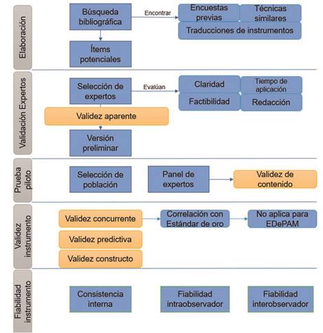 De acuerdo con la síntesis analítica realizada de los artículos seleccionados proponemos la siguiente estructura y fases para la validación de un instrumento diagnóstico (Figura 2):