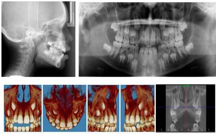 En la evaluación inicial de ortodoncia se realiza una completa anamnesis, se toman fotos extra e intraorales, modelos del maxilar superior e inferior así y registros para realizar un montaje en articulador. Se solicitan exámenes complementarios (telerradiografía perfil, radiografía panorámica y CBCT).